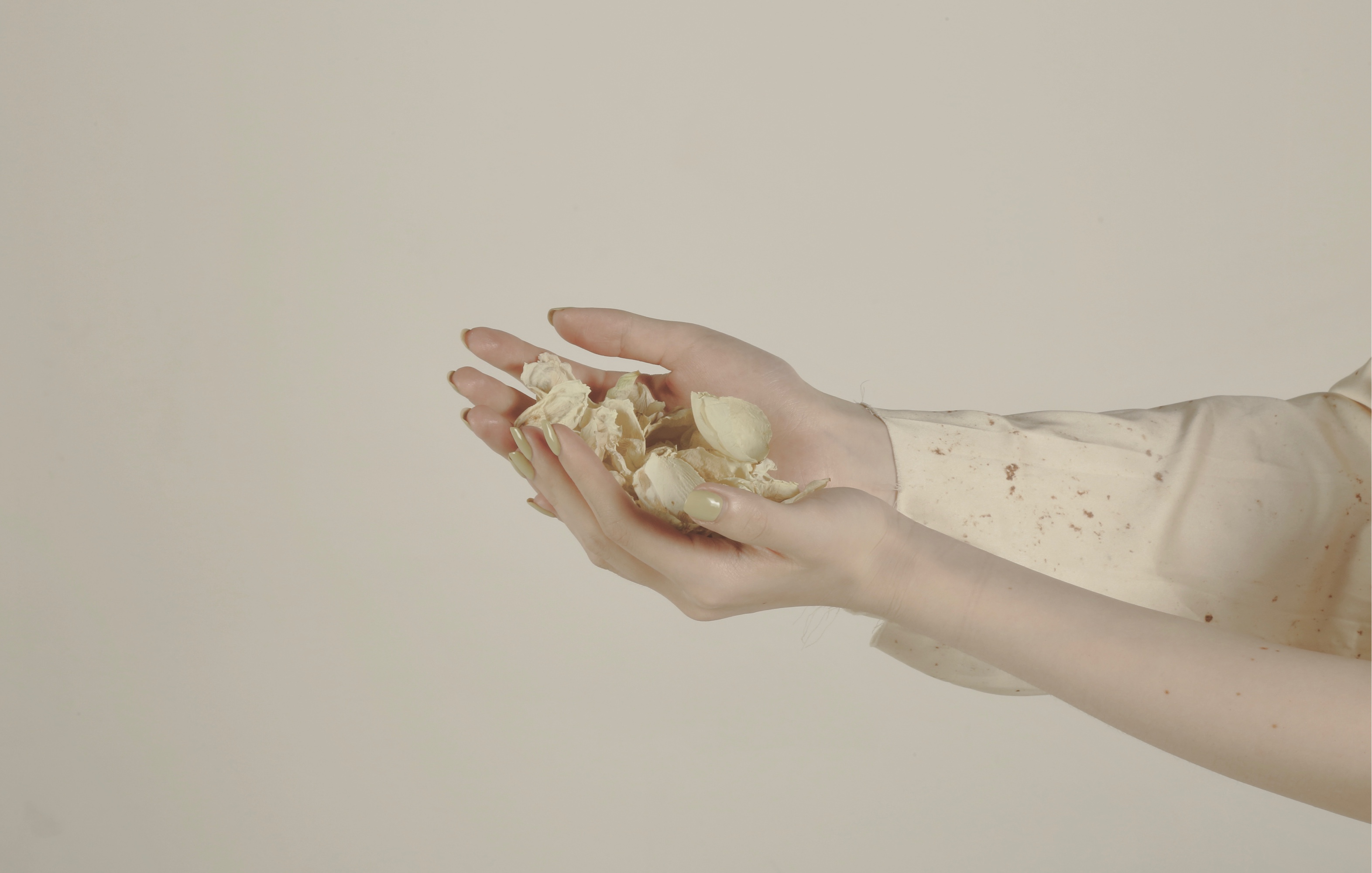 Burning is a ritual that exists in a wide variety of religions and customs. Things that disappear in flames come to the hands of those who have passed away. People love tangible things. Funeral items always seem to be money, houses, cars… Even consolation has the color of consumer society, maybe people just lack the means to know how to send invisible love. I left the touch on the petals and lit the dried petals at the end of the work. The timeliness and materiality disappeared, completing the closed loop of the work — the touch was sent to her by the flame.