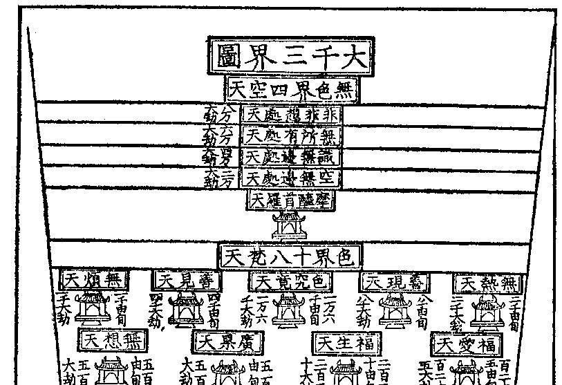 Devaloka: the 27 levels of 天 (tiān) / skies / heavens / stages of meditation according to the theory of the Abhidharma Buddhism school Sarvāstivādins (說一切有部 - the school of all that exists), from the bottom level of (the sky of) four heavenly kings to the highest (27th) of neither perception nor non-perception.