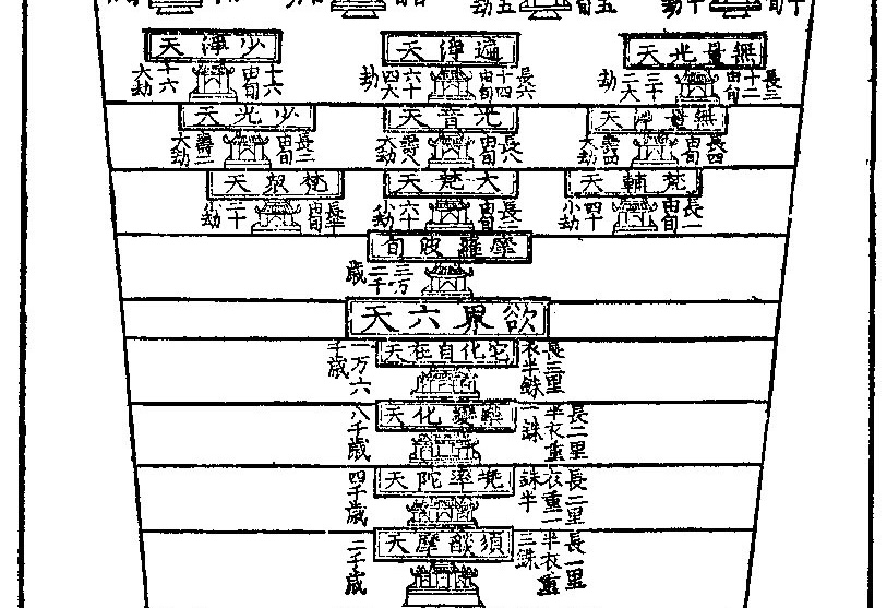 In some fashion of Buddhism practice, people hang a chart of Devaloka on the wall of the meditation chamber or at home, to track / claim their progress on the path of achieving revelation.