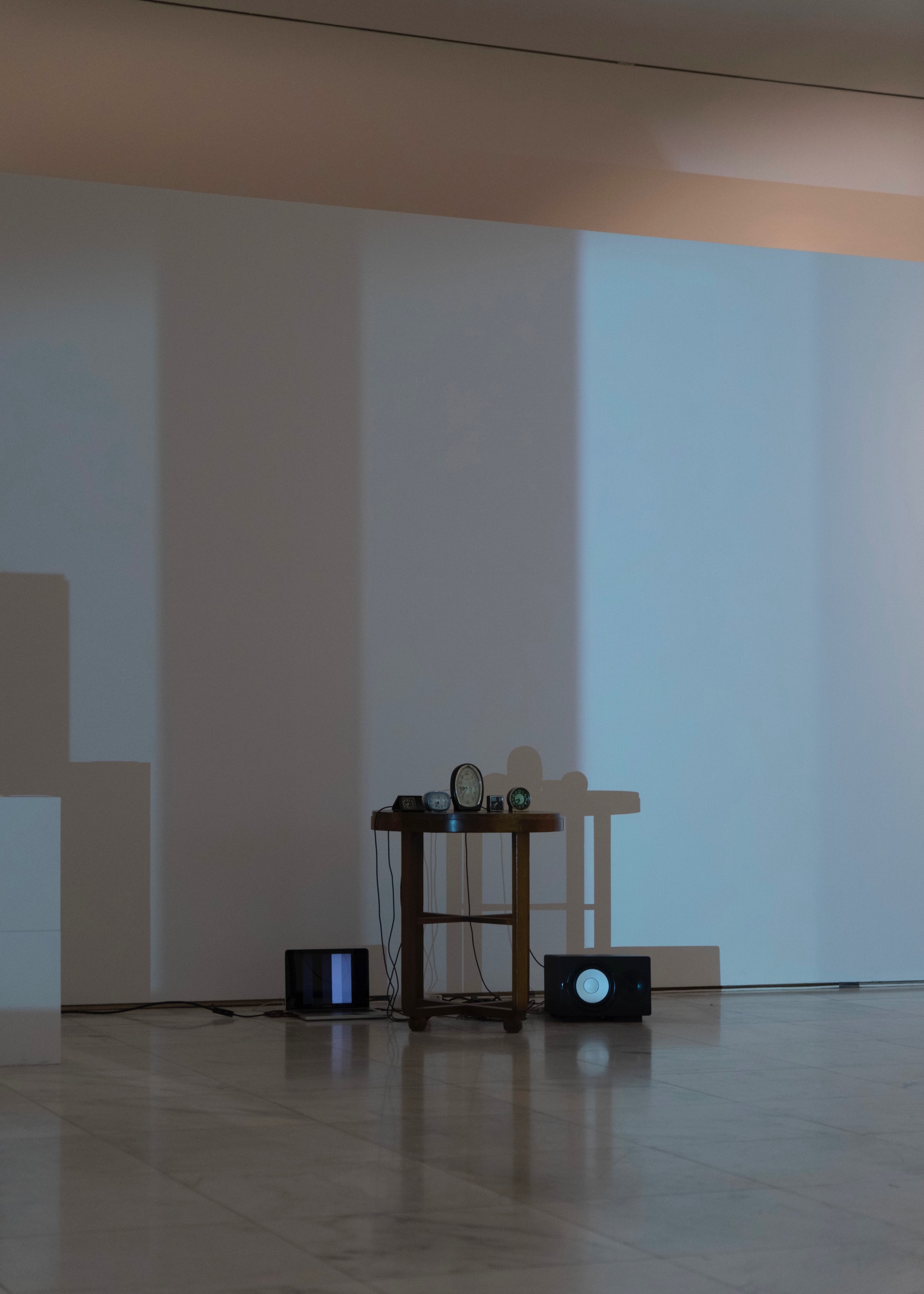 In this long music, the apparatus of timing is the player, its instrument, and the music itself. In an ideal situation, this performance would include all kinds of timekeeping instruments: water clocks, candle clocks, pendulum clocks, mechanical clocks, quartz clocks, atomic clocks ...... The presented work is therefore a part of this ideal performance, which uses jumping-second quartz clocks - the last perceptible ritual of timekeeping technology - to realize this music. Five quartz clocks are switched on at the same time, and the tremors of their second hands will gradually shift out of sequence with each other.
